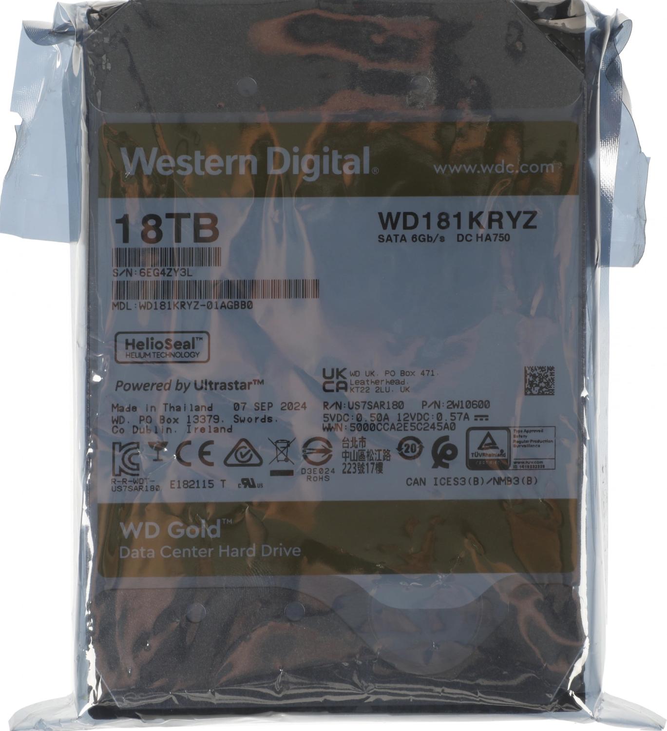 Жесткий диск SATA 18TB 7200RPM 6GB / S 512MB GOLD WD181KRYZ WDC (В наличие в Москве)