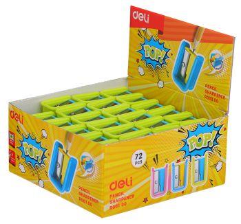 Точилка для карандашей ручная Deli ER00100 PoP 1 отверстие пластик ассорти дисплей
