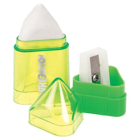 Точилка ЮНЛАНДИЯ "Карандашик", со стирательной резинкой, с контейнером, пластиковая, ассорти, 228440