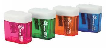 Точилка для карандашей ручная Deli E0576 Cubic 2 отверстия пластик ассорти дисплей