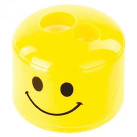 Точилка ПИФАГОР "Смайлики", 2 отверстия для чернографитных карандашей (в том числе утолщенных), с контейнером, пластиковая, ассорти, 228444