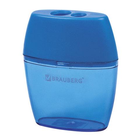 Точилка BRAUBERG "Diamond Dual", 2 отверстия для чернографитных карандашей (в том числе утолщенных), с контейнером, ассорти, 226941