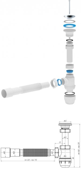 Сифон АНИ ЮНГ 1 1 / 4" (BM1016) c гибкой трубой 32*40 / 50