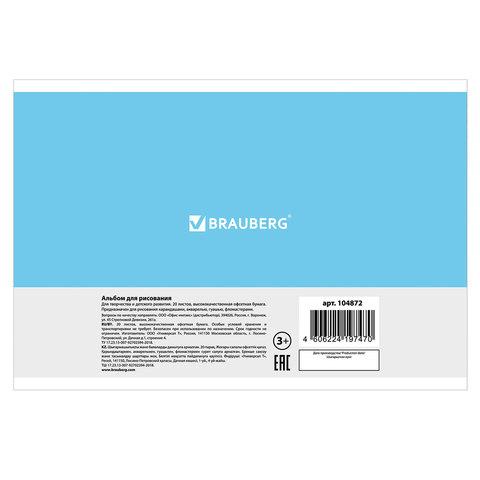 Альбом для рисования, А4, 20 л., скоба, обложка картон, BRAUBERG, 200х283 мм, "Я рисую мир" (2 вида), 104872