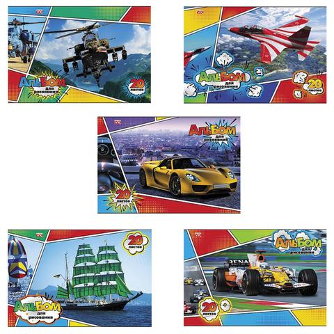Альбом для рисования, А4, 20 л., скоба, обложка офсет, ПИФАГОР, 200х285 мм, "Машинки" (2 вида), 104868