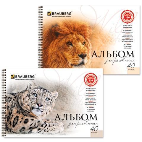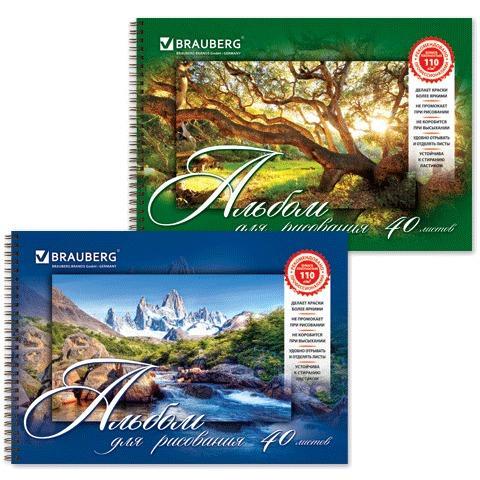 Альбом для рисования, А4, 40 листов, гребень, обложка картон, BRAUBERG, 195х285 мм, "Удивительная Природа" (2 вида), 102832