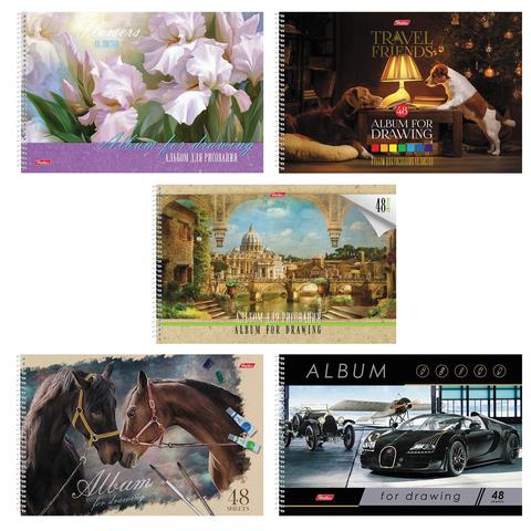 Альбом для рисования, А4, 48 листов, спираль, обложка картон, HATBER, 205х300 мм, "Ассорти (5 видов)", 051886, 48А4Всп