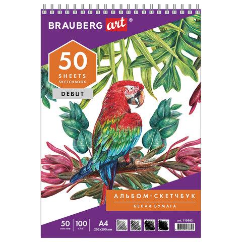 Скетчбук, белая бумага 100 г / м2, 205х290 мм, 50 л., гребень, жёсткая подложка, BRAUBERG ART DEBUT, 110983