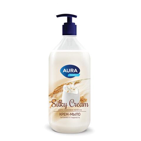 Мыло-крем гипоаллергенное 1 л, AURA FAMILY "Шелк и экстракт риса", дозатор, 14956