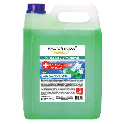 Мыло-крем жидкое с АНТИБАКТЕРИАЛЬНЫМ ЭФФЕКТОМ, 5 л, ЗОЛОТОЙ ИДЕАЛ "Холодная мята", 607490