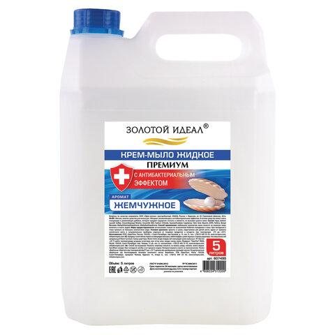 Мыло-крем жидкое с АНТИБАКТЕРИАЛЬНЫМ ЭФФЕКТОМ, 5 л, ЗОЛОТОЙ ИДЕАЛ "Премиум Жемчужное", 607495