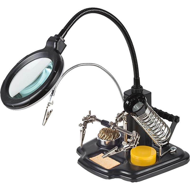 Держатель третья рука МАСТЕР с лупой х3 подставкой под паяльник LED подсветкой и стендом для припоя ZD-10Y REXANT 12-0258
