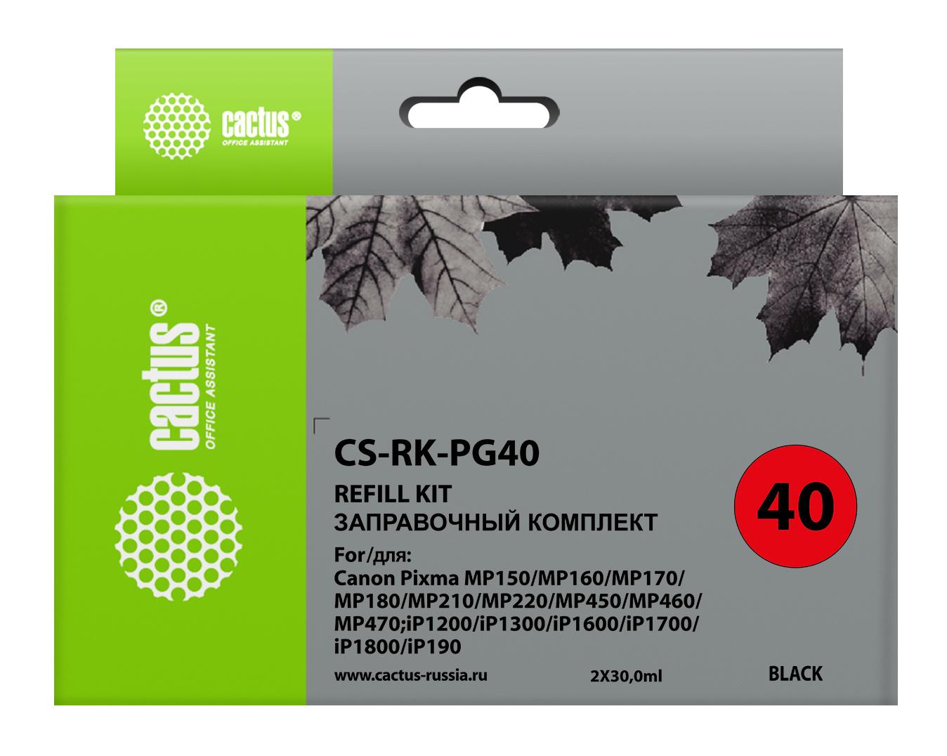 Заправочный набор Cactus CS-RK-PG40 черный 2x60мл для Canon MP150 / MP160 / MP170 / MP180 / MP210
