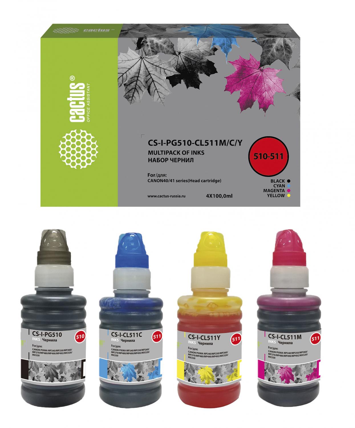 Чернила Cactus CS-I-PG510-CL511M / C / Y многоцветный набор 4x100мл для Canon Pixma MP240 / MP250 / MP260 / MP270