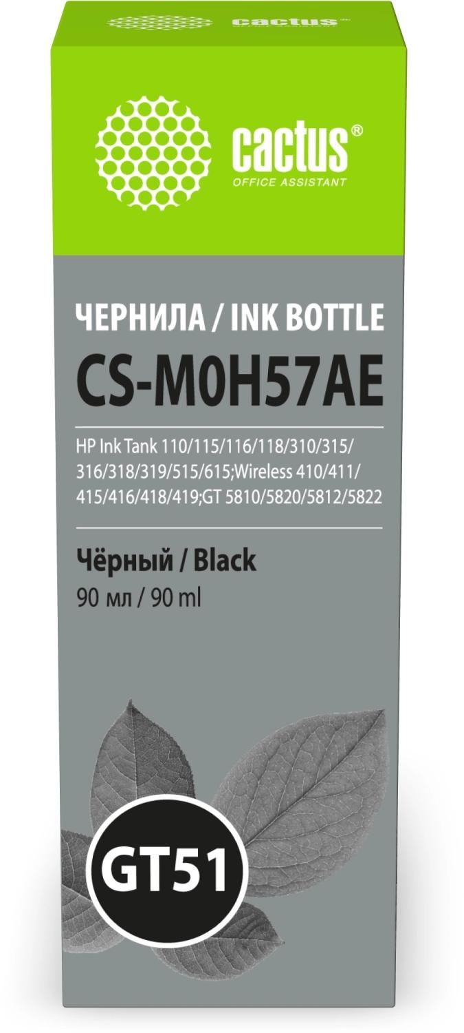 Чернила Cactus CS-M0H57AE GT51 черный 90мл для HP Ink Tank 110 / 115 / 116 / 118 / 310 / 315 / 316 / 318 / 319 / 515 / 615;Wireless 410 / 411 / 415 / 416 / 418 / 419;GT5810 / 5820 / 5812 / 5822