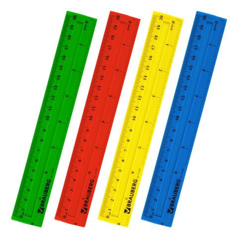 Линейка пластиковая 20 см, BRAUBERG, прозрачная, тонированная, 210606