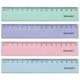 Линейка пластиковая 15 см BRAUBERG "PASTEL", тонированная, ассорти, 117012