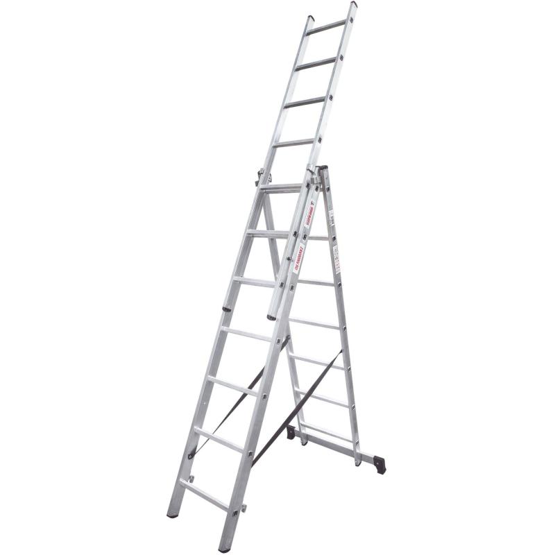 СИБРТЕХ Лестница, 3 х 9 ступеней, алюминиевая, трехсекционная, Россия [97819]
