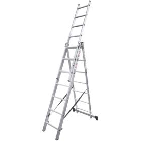 Лестница-трансформер 3-х секционная 3х7 ступеней, высота 4,5 м (3 секции по 1,9 м), нагрузка 150 кг, алюминий, НОВАЯ ВЫСОТА, 1230307