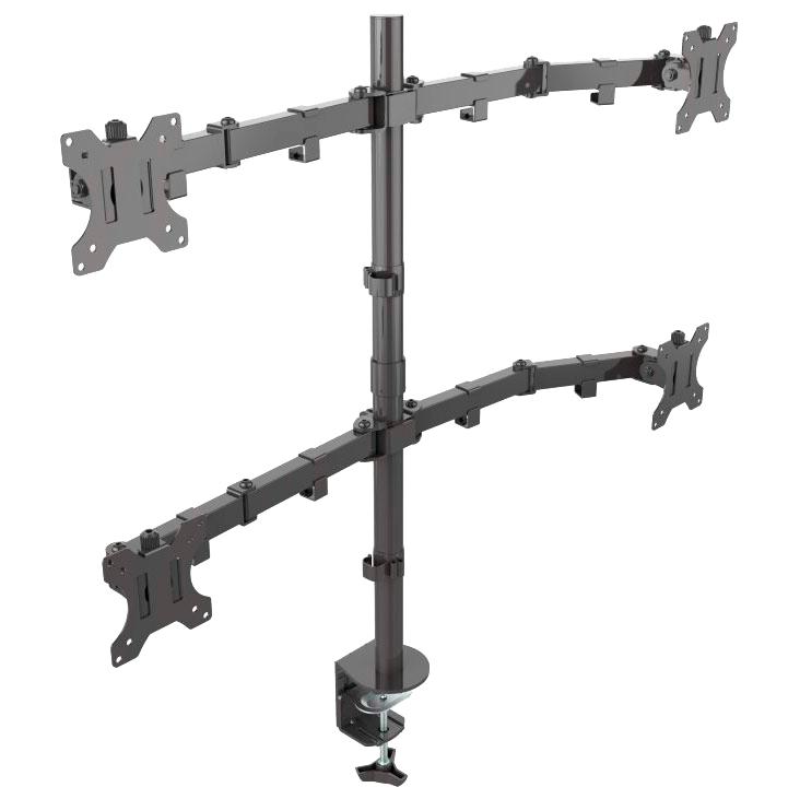Кронштейн для 4-х мониторов ONKRON / 10-32" макс. 100*100, струбцина, наклон -85º+90º поворот 360º, вылет от основания 0-385мм, вертикальное перемещение 200-660мм, макс. нагрузка 8кг каждый