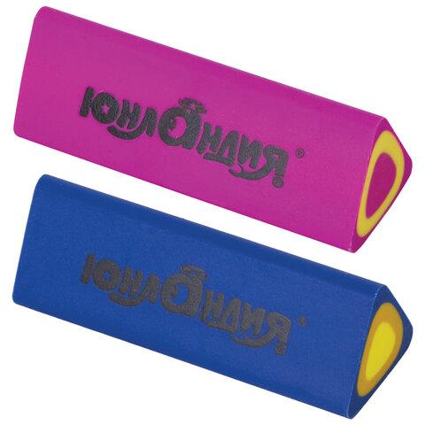 Ластик ЮНЛАНДИЯ "Трио", 35х35х10 мм, цвет ассорти, треугольный, 228072