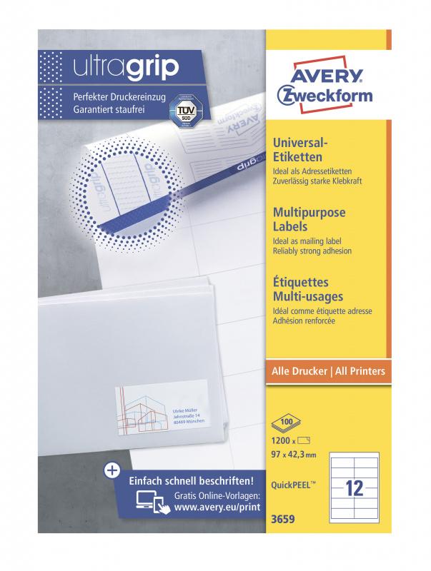 Этикетки Avery Zweckform 3659 A4 97x42.3мм 12шт на листе / 70г / м2 / 100л. / белый матовое самоклей. универсальная