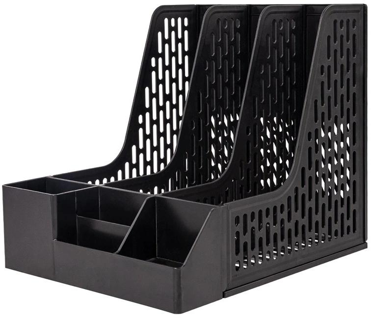 Лоток вертикальный Deli E9847 BLACK 3отд. сборный для бумаг 253x320x275мм черный пластик пластиковый пакет