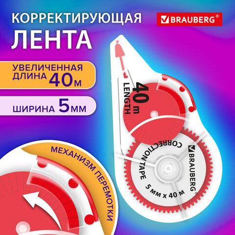 Корректирующая лента BRAUBERG EXTRA LENGTH, 5 мм х 40 м, механизм перемотки, корпус прозрачный, блистер, 272502