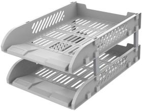 Лоток горизонтальный Deli E9212 GREY сборный для бумаг 325x241x155мм серый пластик (упак.:2шт) пластиковый пакет