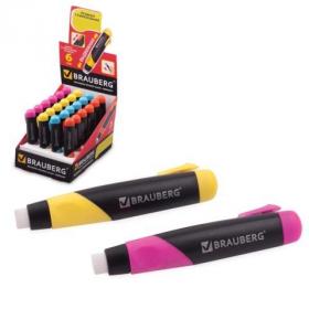 Ластик выдвижной BRAUBERG "REWIND", 112х21х24 мм, белый, пластиковый держатель ассорти, 223593