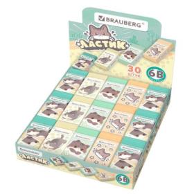 Ластик кросс-серия МИЛЫЕ КОТЫ, 50х24х10 мм, прямоугольный, картонный держатель, ассорти, ЭКО ПВХ, BRAUBERG, 273227