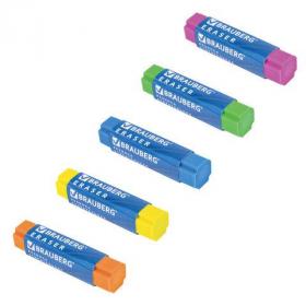 Ластик BRAUBERG "X-Erase", 68х15х15 мм, цвет ассорти, экологичный ПВХ, 228066
