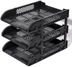 Лоток горизонтальный Deli E9213 BLACK сборный для бумаг 325x241x155мм черный пластик (упак.:3шт) пластиковый пакет