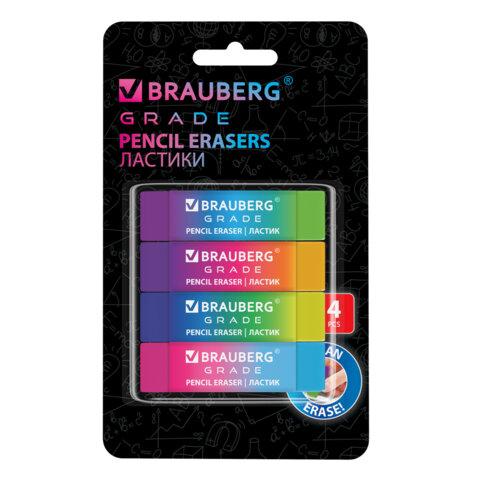Ластики BRAUBERG GRADE НАБОР 4 штуки, размер ластика 60х15х10 мм, упаковка блистер, 271344