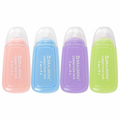 Корректирующая лента BRAUBERG PASTEL 360, 5 мм х 6 м, ассорти, автоматическая, блистер, 272662