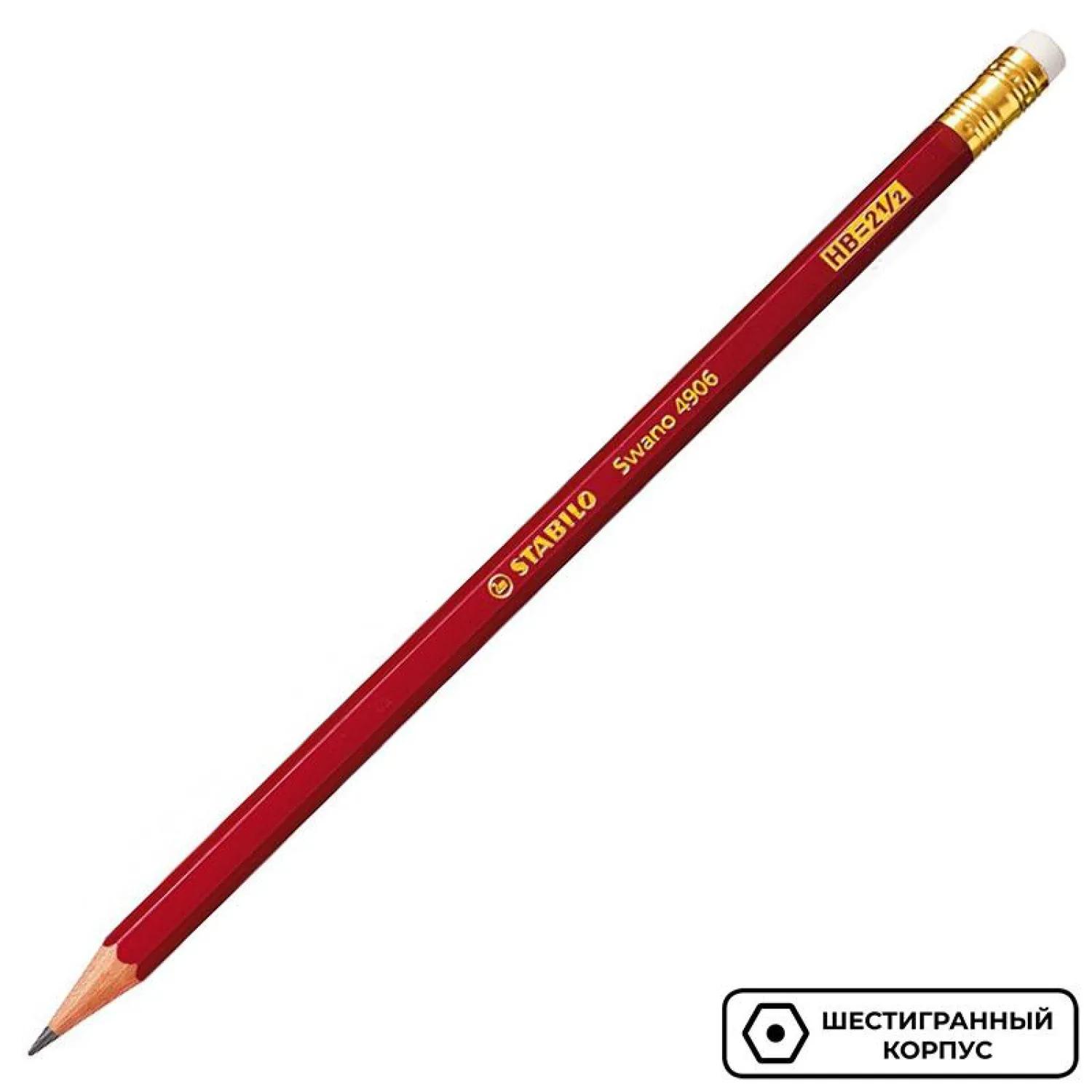 Карандаш чернографитный STABILO Swano 4906 НВ с ластиком