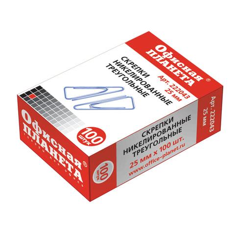 Скрепки ОФИСНАЯ ПЛАНЕТА, 25 мм, никелированные, треугольные, 100 шт., в картонной коробке, 222043