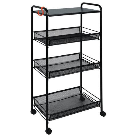 Этажерка (тележка) BRABIX офисно-бытовая 4 яруса, на колесах, металл, черная, 43,5х26х83,5 см, 603753