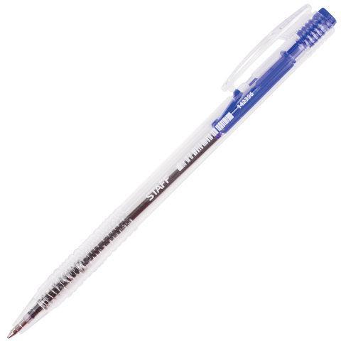 Ручка шариковая автоматическая STAFF "Basic" BPR-245, СИНЯЯ, корпус прозрачный, 0,7 мм, линия письма 0,35 мм, 142396
