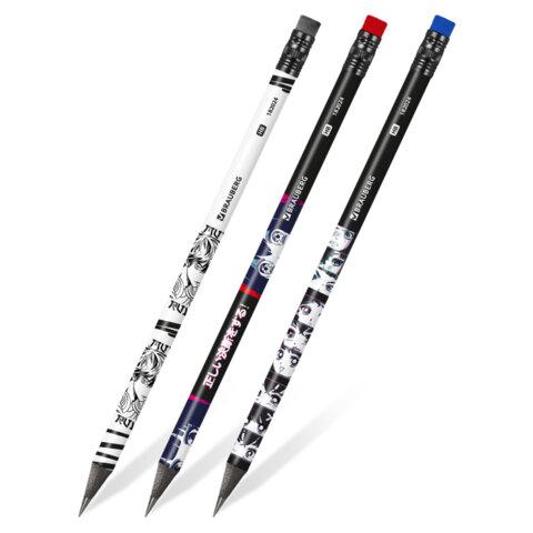 Карандаш чернографитный с принтом BRAUBERG "MANGA", 1 шт., HB, с ластиком, корпус ассорти, 182024