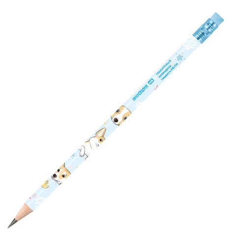 Карандаш чернографитный с принтом ЮНЛАНДИЯ КОРГИ, 1 шт., HB, с ластиком, корпус ассорти, 182009