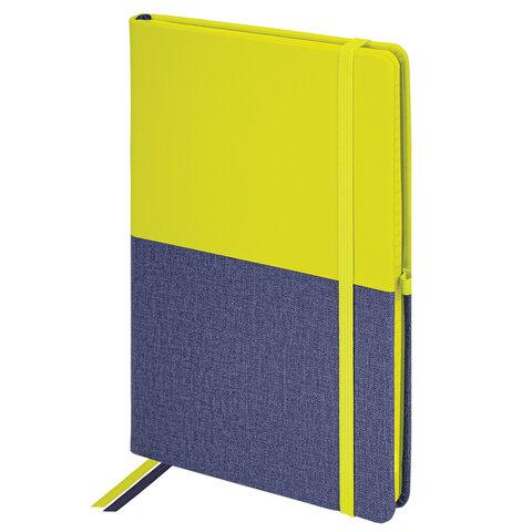 Блокнот А5 (148х218 мм), BRAUBERG "DUO", под кожу с резинкой, 80 л., клетка, зеленый / фиолетовый, 113430