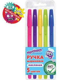 Ручки шариковые масляные ЮНЛАНДИЯ, НАБОР 5 шт., 5 цветов, "АНТИБАКТЕРИАЛЬНЫЕ", узел 0,7 мм, линия письма 0,35 мм, 143349, OBP384