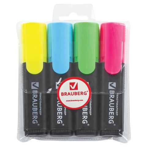Набор текстовыделителей BRAUBERG 4 шт., АССОРТИ, "Contract", линия 1-5 мм, 150394