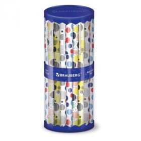 Ручка шариковая BRAUBERG SOFT TOUCH GRIP "DOTS", СИНЯЯ, мягкое покрытие, ассорти, узел 0,7 мм, 143722