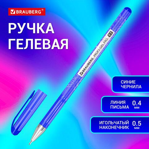 Ручка гелевая BRAUBERG "Profi-Gel PRO", СИНЯЯ, линия письма 0,4 мм, игольчатый наконечник 0,5 мм, печать на корпусе, 144125