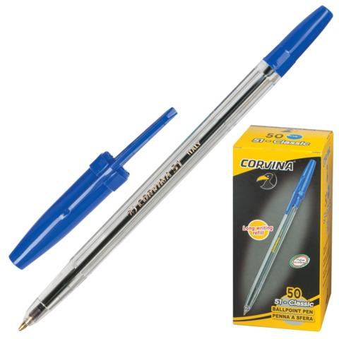 Ручка шариковая CORVINA (Италия) "51 Classic", СИНЯЯ, корпус прозрачный, узел 1 мм, линия письма 0,7 мм, 40163 / 02