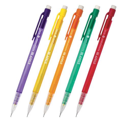 Карандаш механический 0,5 мм, STAFF "College" MP-425, ластик, корпус тонированный ассорти, 181425