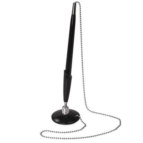 Ручка шариковая настольная BRAUBERG "Стенд-Пен Блэк1", СИНЯЯ, цепочка, корпус черный, линия письма 0,5 мм, 140889