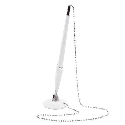 Ручка шариковая настольная BRAUBERG "Стенд-Пен Уайт1", СИНЯЯ, цепочка, корпус белый, линия письма 0,5 мм, 141044